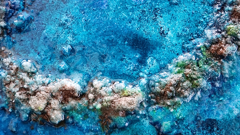 Quant aux couleurs, il les déploie avec passion à travers l’huile, l’encre et la peinture acrylique, mais aussi des pigments et des minéraux broyés, créant ainsi des jeux de lumière et de transparence qui, loin de se contenter de capter l’œil, sollicitent également l’âme.